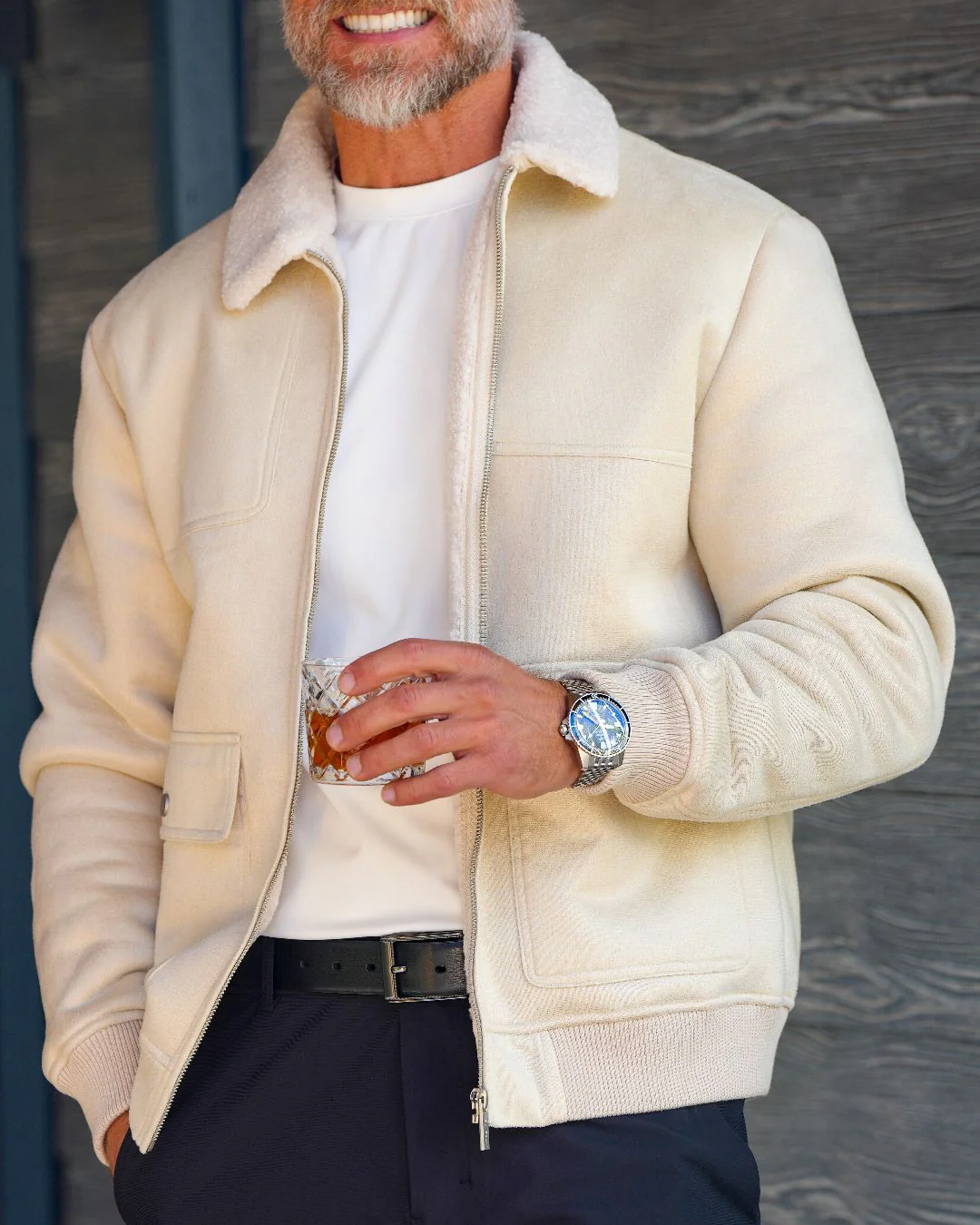 The pinnacle of cold-weather luxury. The Monarch Summit Bomber pairs a smooth suede-feel outer shell with a full plush sherpa lining for warmth, structure, and an unmistakable premium look.